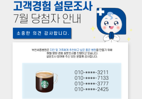 [안내] 부천세종병원 첫 방문 고객 설문조사 7월 당첨자 안내