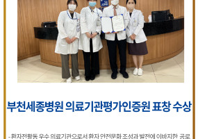부천세종병원, 의료기관평가인증원 표창 수상